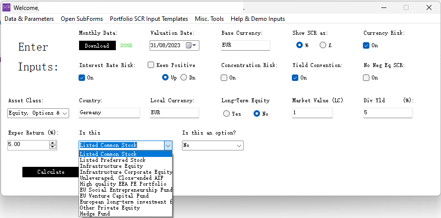 - Option Price, Maturity, and Discount Rate, along with the previously entered Dividend Yield, to calibrate implied volatility.