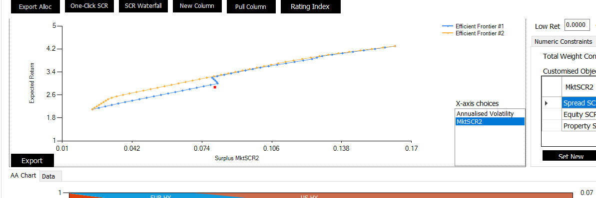 Users can minimise market risk SCR, or any other metric, instead of volatility by using the customised objective feature in the SAA Optimiser.